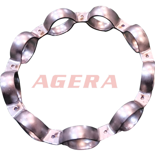 此焊接產(chǎn)品為軸承保持支架凸焊產(chǎn)品,采用安嘉自動(dòng)化中頻直流逆變點(diǎn)焊機(jī)焊接,專用夾具定位焊接,焊接效率高,進(jìn)口IGBT控制模塊將電源頻率升至1000HZ,時(shí)間ms級(jí)控制,次級(jí)直流輸出,阻抗小,熱量集中,焊接強(qiáng)度高,變形小,拉拔試驗(yàn)凸點(diǎn)可拉穿母材。