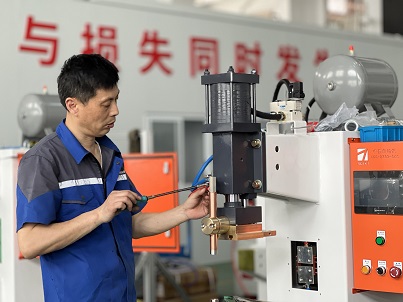 巴西客戶來(lái)廠驗(yàn)收機(jī)器人螺母凸焊工作站